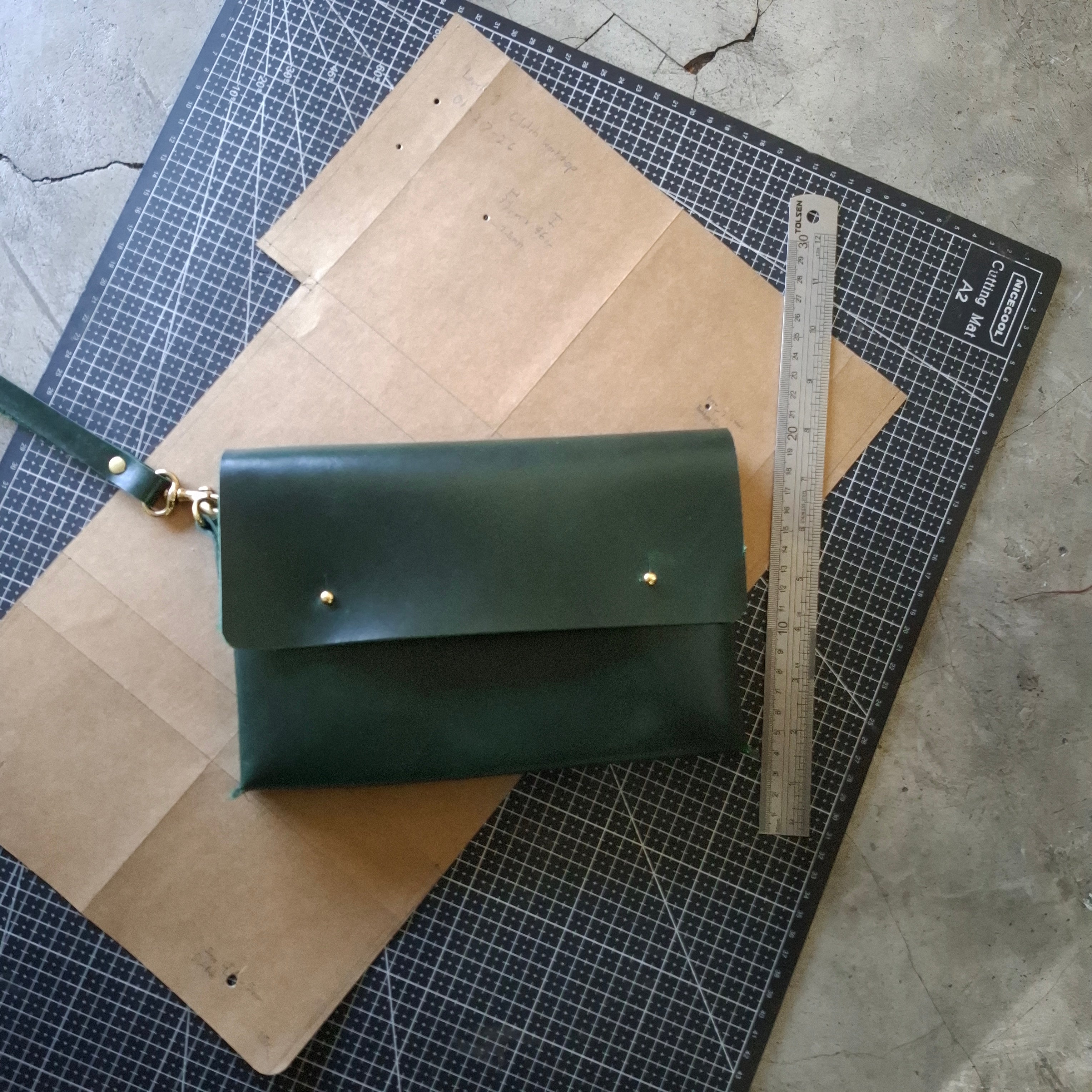 The Clutch Bag Workshop is an entry level class introducing students to the skills of cutting and hand-stitching leather. This class is focused on the construction of the project and does not include pattern making for the sleeve itself.