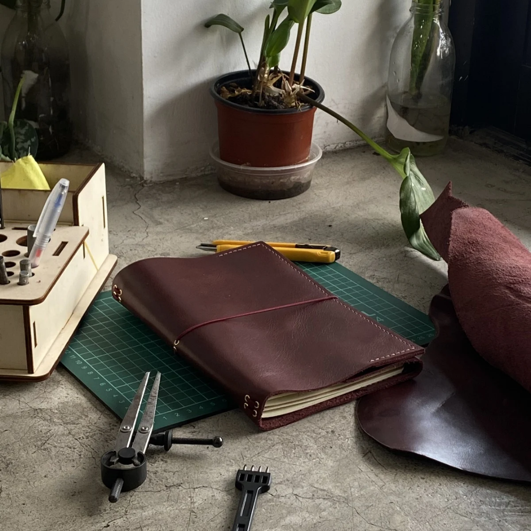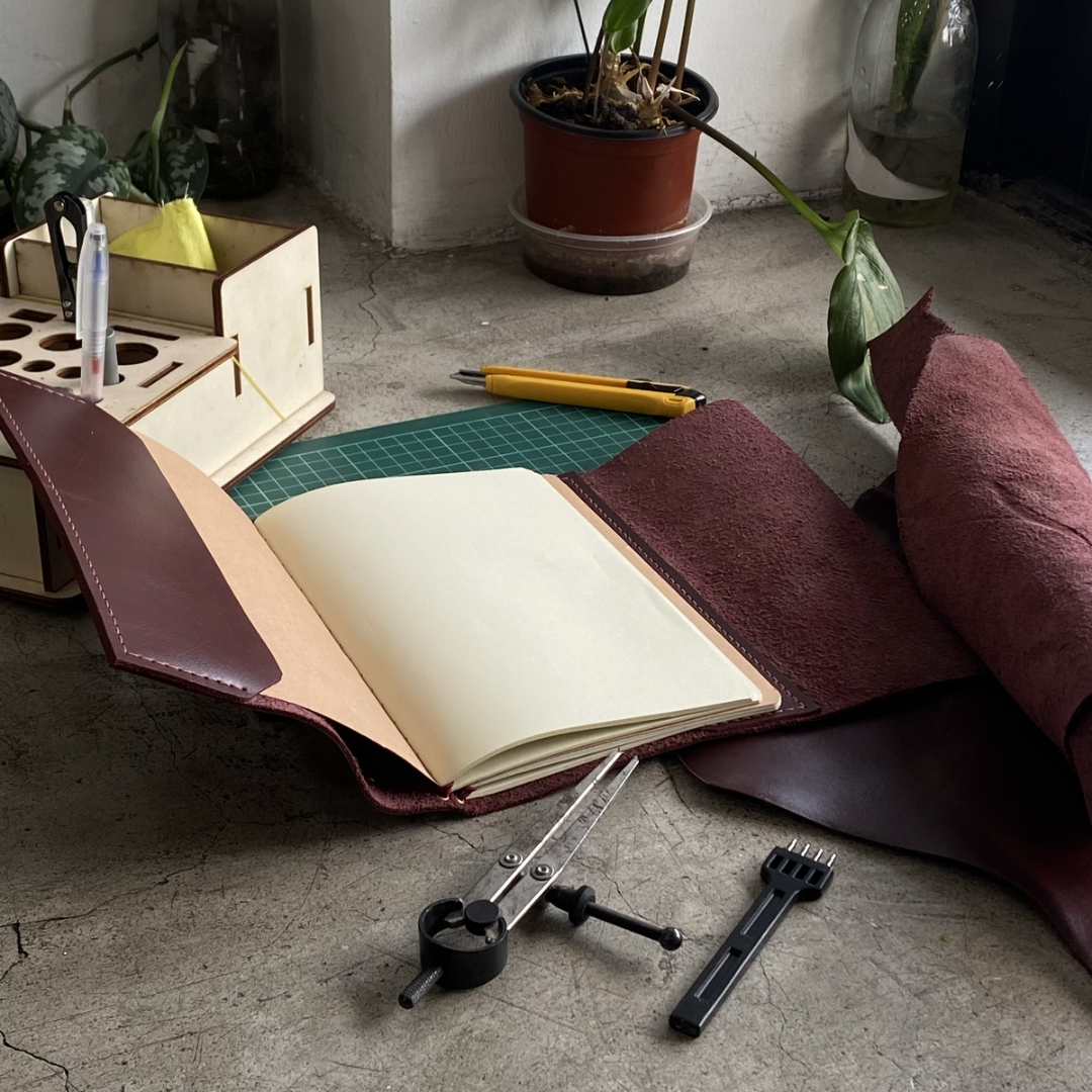 The Leather Folio workshop is an entry level class introducing students to the basic skills of punching and hand-stitching leather. This class is focused on practicing the skills used in the construction of the leather folio and does not include pattern making for the folio itself.