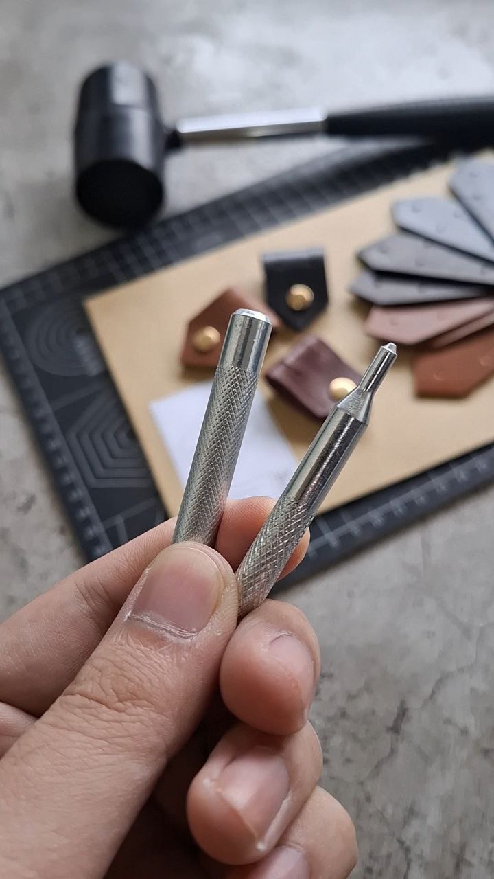This pack includes 10 pcs of pre-cut random and assorted leather panels and a pack of button snaps for the project.