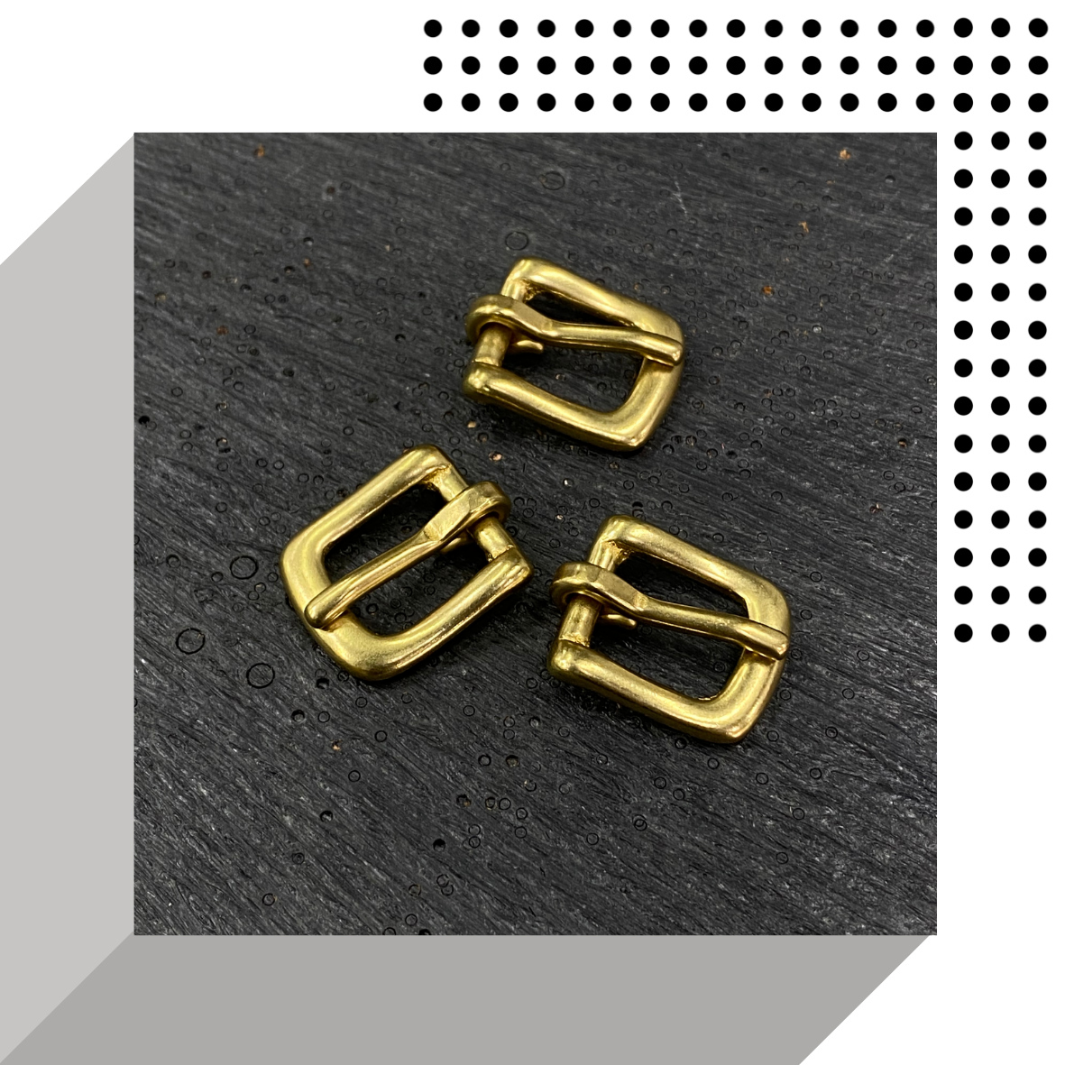 A durable, corrosion-resistant fastener made from solid brass, used to secure straps on belts, bags, and equestrian gear.